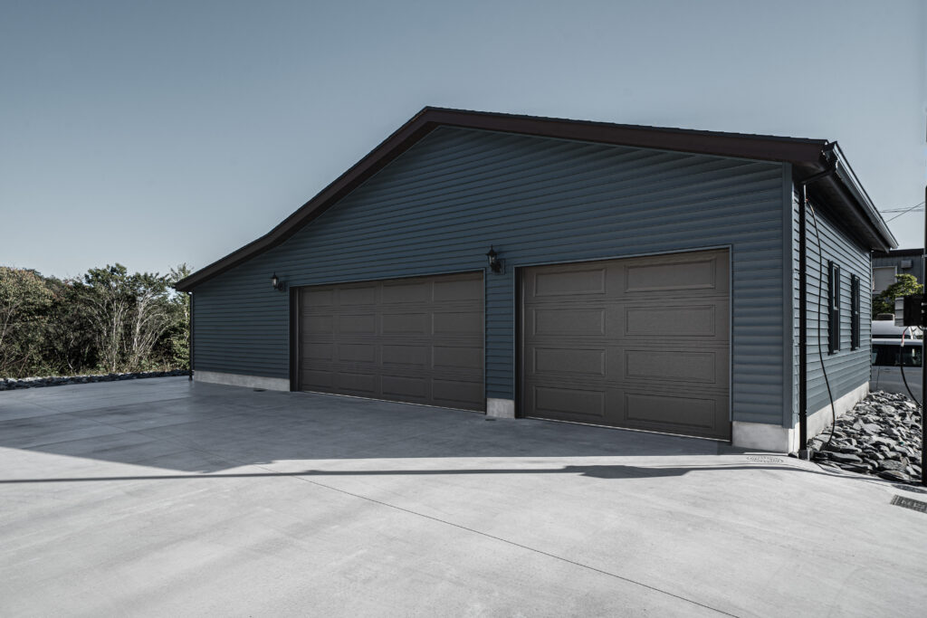 重厚感のある、大人ブルーが映える大型ガレージが完成しました!