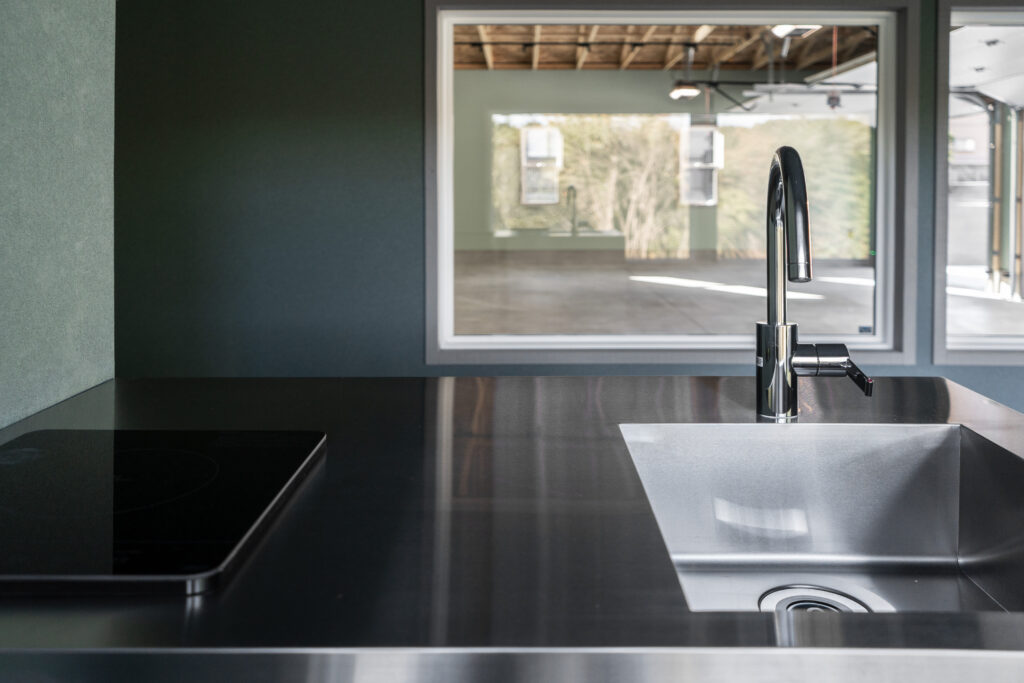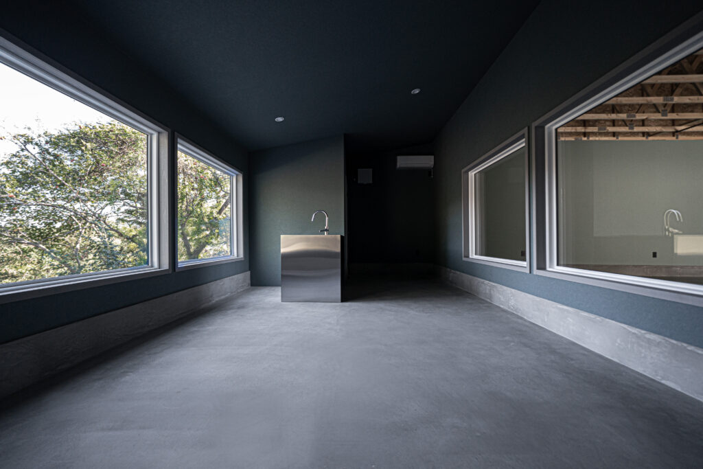 さらに、ガレージの一部には小さなキッチン付きの部屋を設け、オーナー様はコーヒーを片手に大きな窓から愛車を眺める空間として活用。