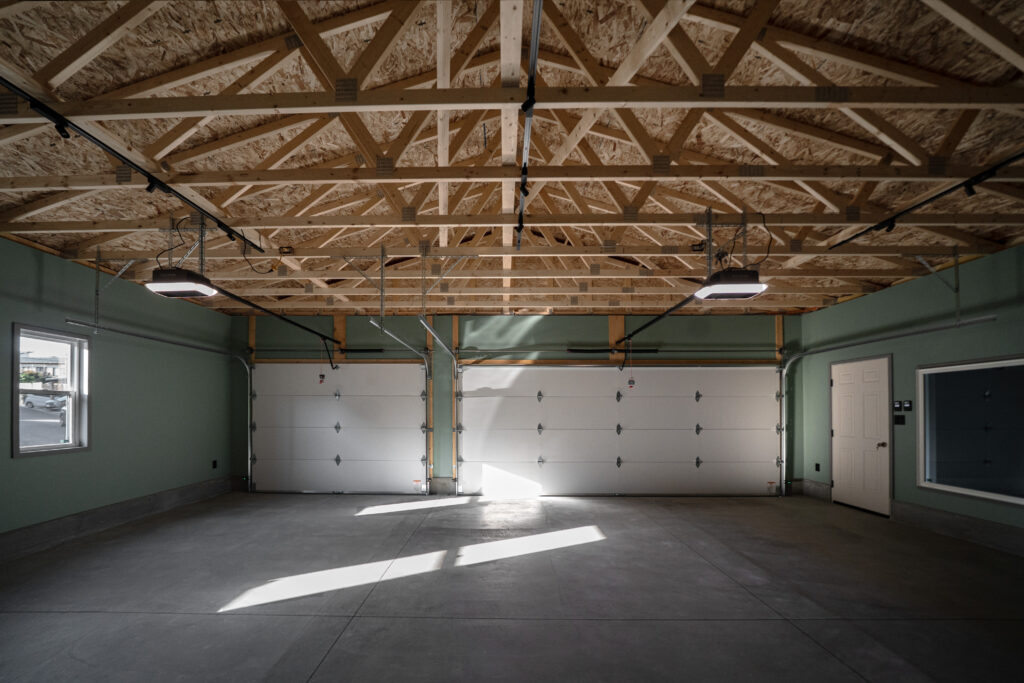 ガレージドアは2枚設置し、車3台をゆったりと収納可能!!広々とした土間は、駐車や整備はもちろん、趣味スペースとしても活躍します。