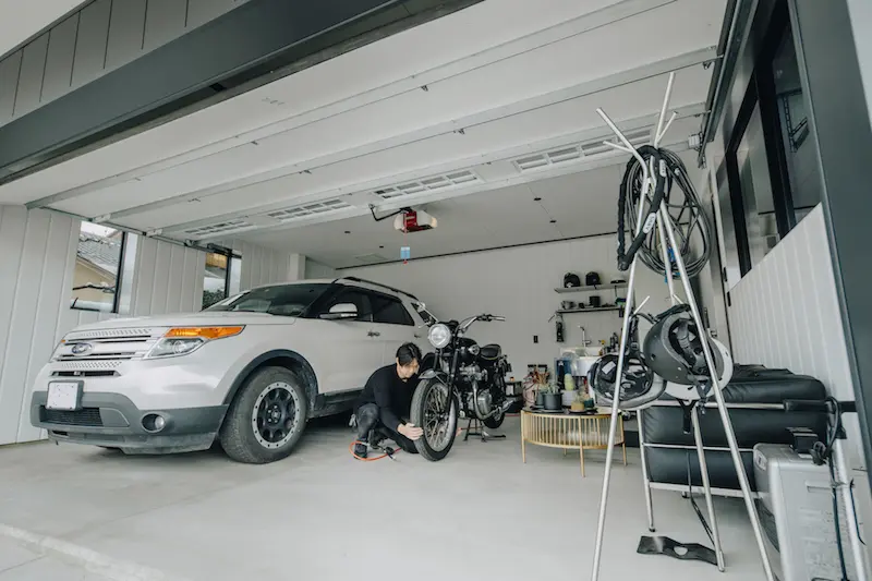 という夢を叶えるべく2020年に住居の一部にビルドインガレージを建設した。